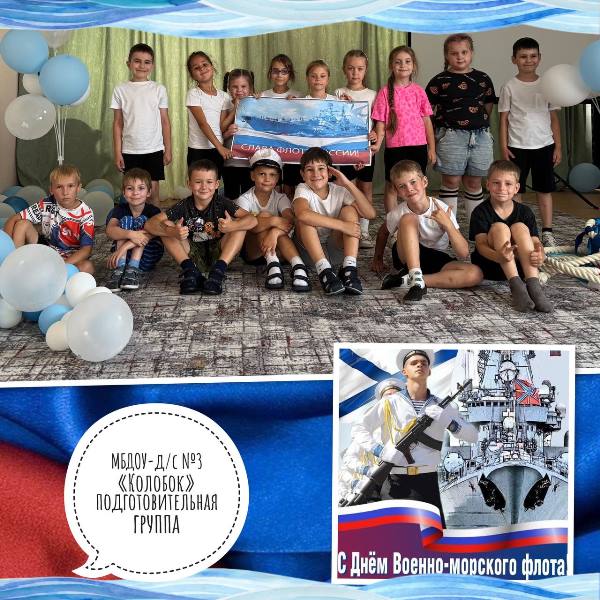 Сегодня 24.07.2025 года в МБДОУ – детский сад № 3 «Колобок» в подготовительной к школе группе под руководством воспитания Батюченко В. И. состоялся спортивный досуг, посвященный празднованию Дня Военно-морского флота России.