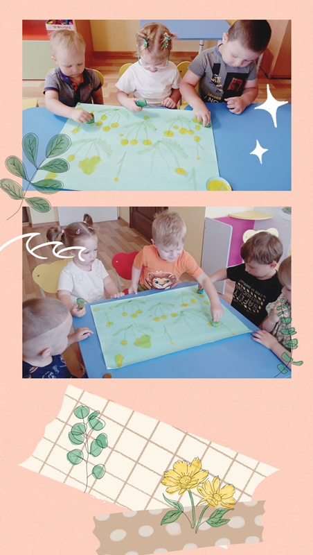 В первой младшей группе «Б» дети вместе с воспитателем Натальей Фёдоровной вспоминали лето. Они делились впечатлениями: «Лето было жарким, зелёным, весёлым, разноцветным и вкусным». Каждый рассказывал, как провёл это время. Кто-то был на море, строил замки из песка и лепил куличики, кто-то ездил в деревню к бабушке и нашёл много новых друзей. А те, кто остался дома, тоже не скучали. Они ходили на речку, собирали ягоды в лесу. Воспитатель провела беседу о цветах и рассказала много интересного о них, а затем дети рисовали в необычной технике. Ребята были в восторге от этого занятия.